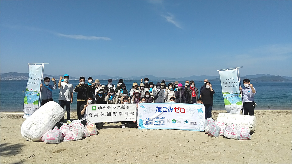 ゆめテラス祇園の従業員による宮島包ヶ浦海岸清掃(2023年4月28日実施)